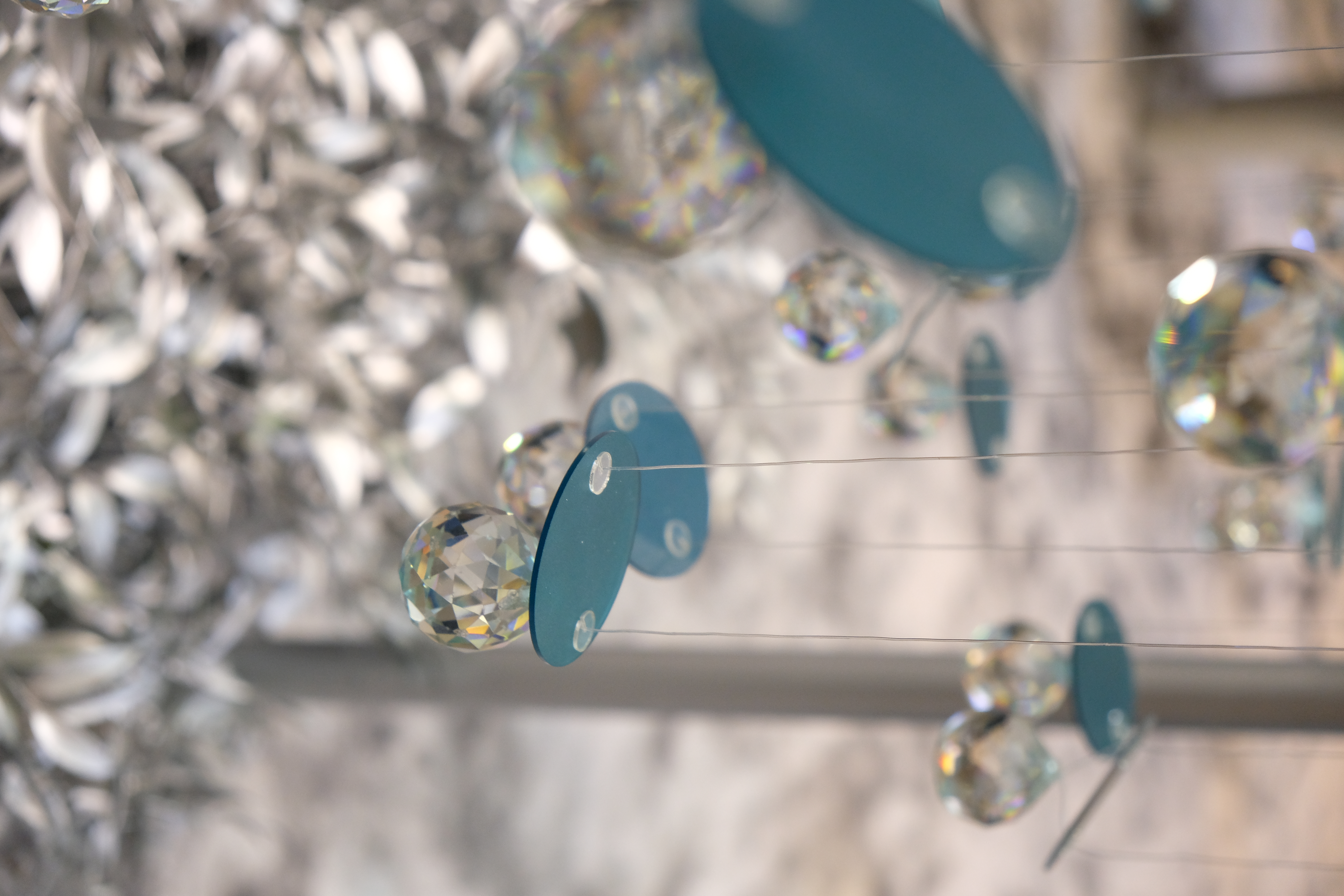 Every detail in Aqua Steel is meticulously curated—tubular elements rise like sculpted pillars, their chrome surfaces catching the light in an endless play of reflections. Suspended cut-outs dance mid-air, casting shadows and refracting movement, echoing the fluidity of rippling water. Acrylic and mirrored surfaces dissolve boundaries, creating an illusion of depth, a space where reality bends into abstraction.