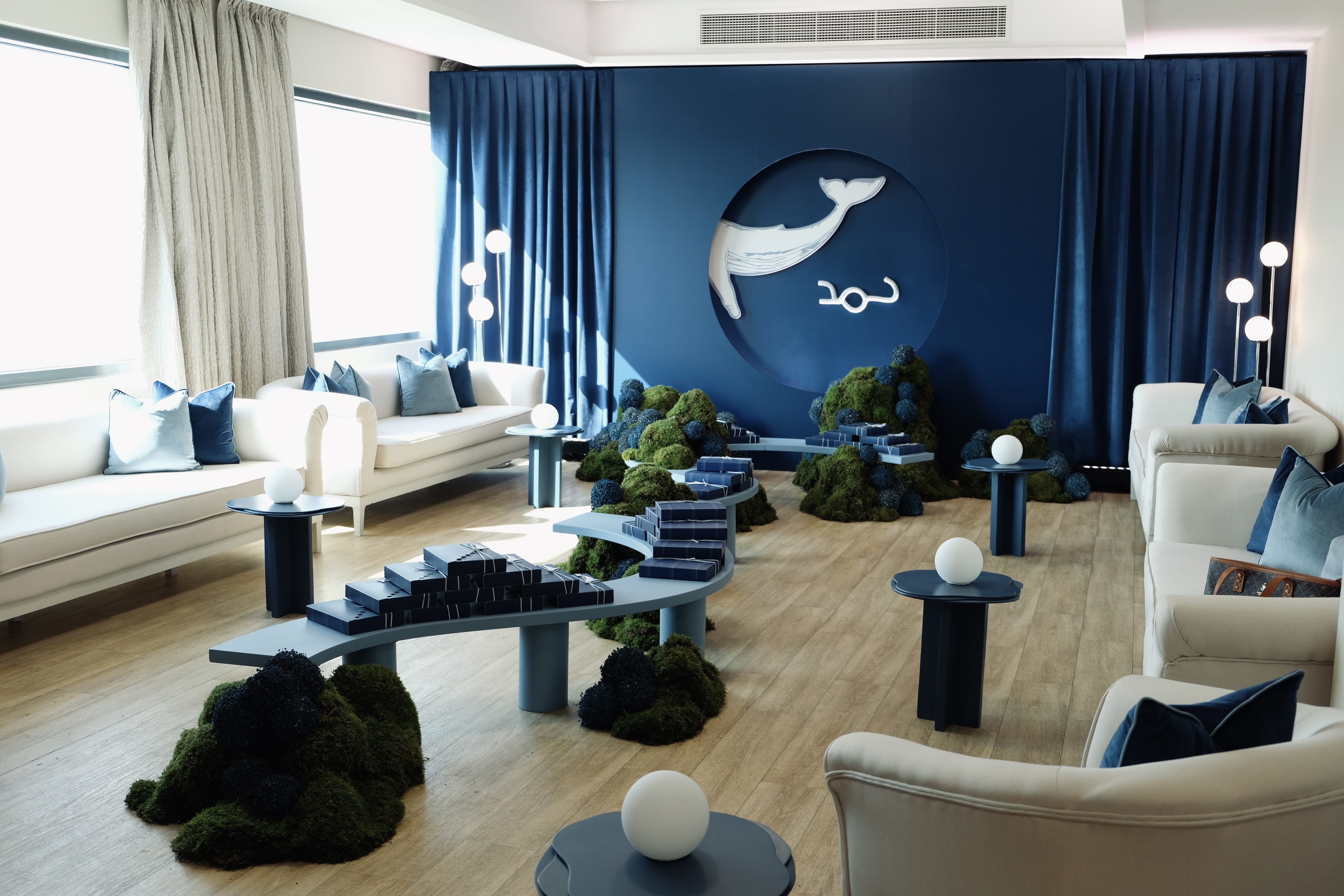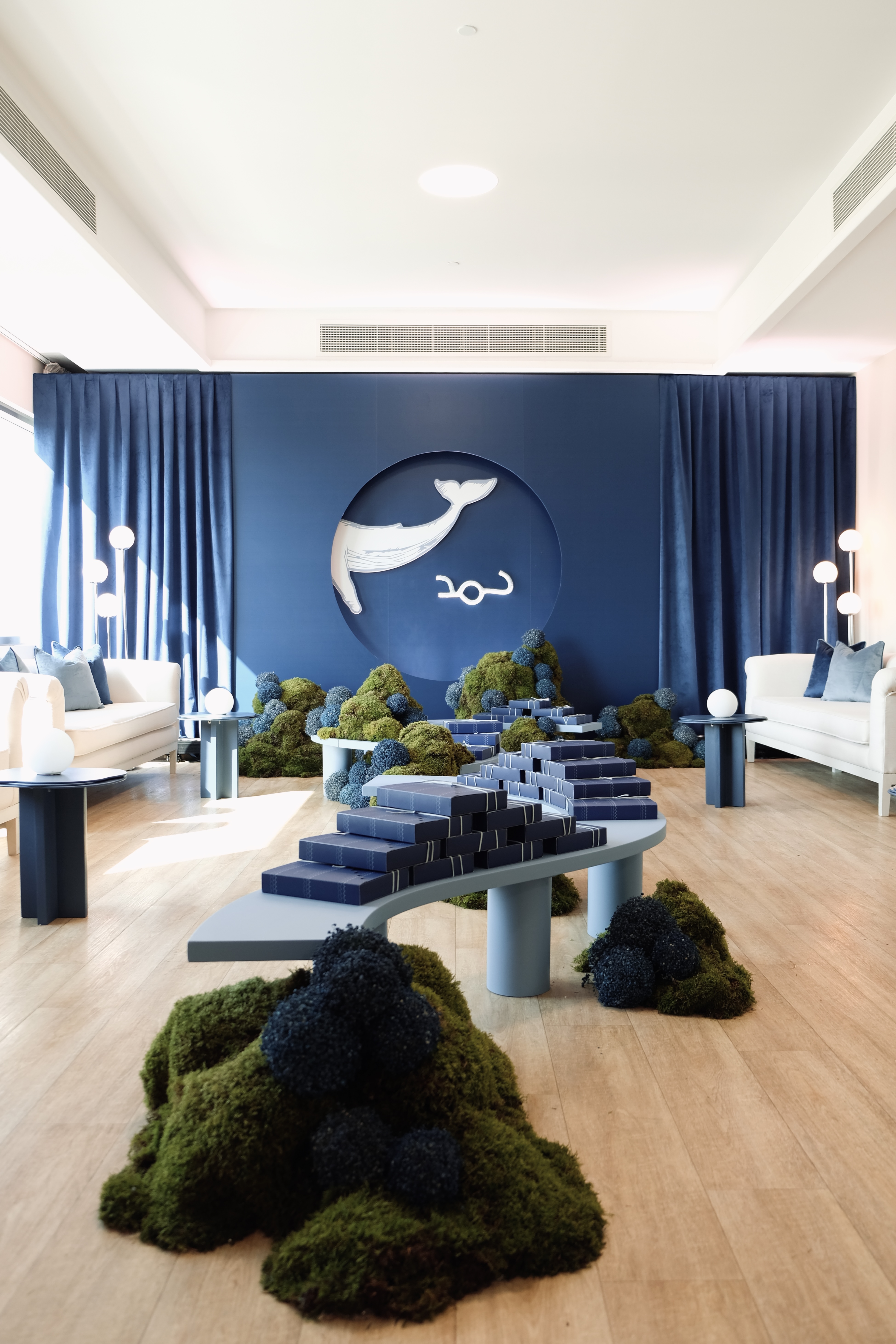This project draws inspiration from the endless depths of the ocean, weaving together shades of blue, coral formations, and the serene rhythm of waves to create an intimate, transformative space. Designed as a postnatal baby reception, the styling celebrates the beauty of new beginnings while paying homage to the natural world. The baby name logo, subtly crafted, symbolizes the purity and innocence of this celebration. From the gentle curves of the coral-inspired table design to the organic packaging that mirrors underwater textures, every detail tells a story. Light and shadow play across the space