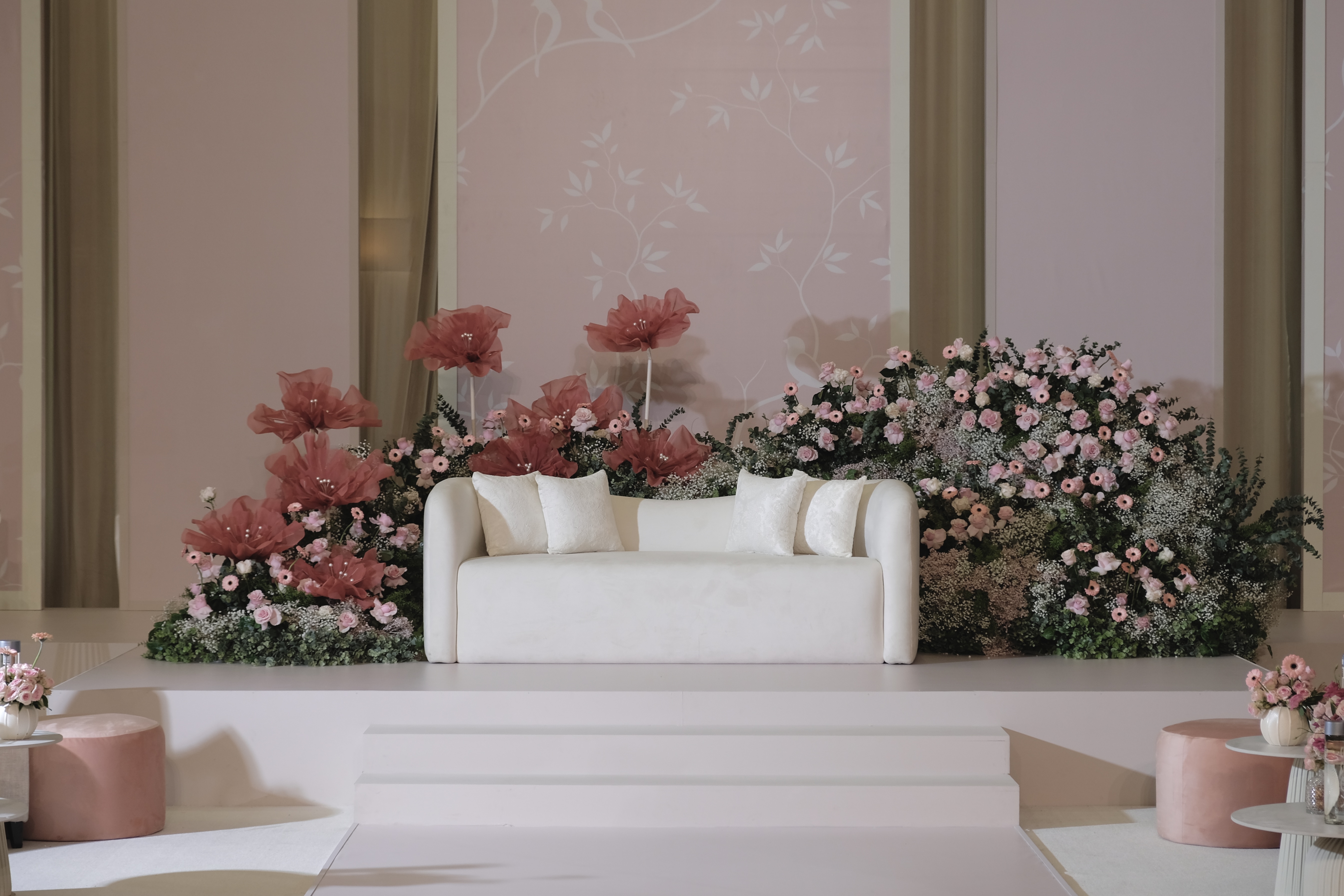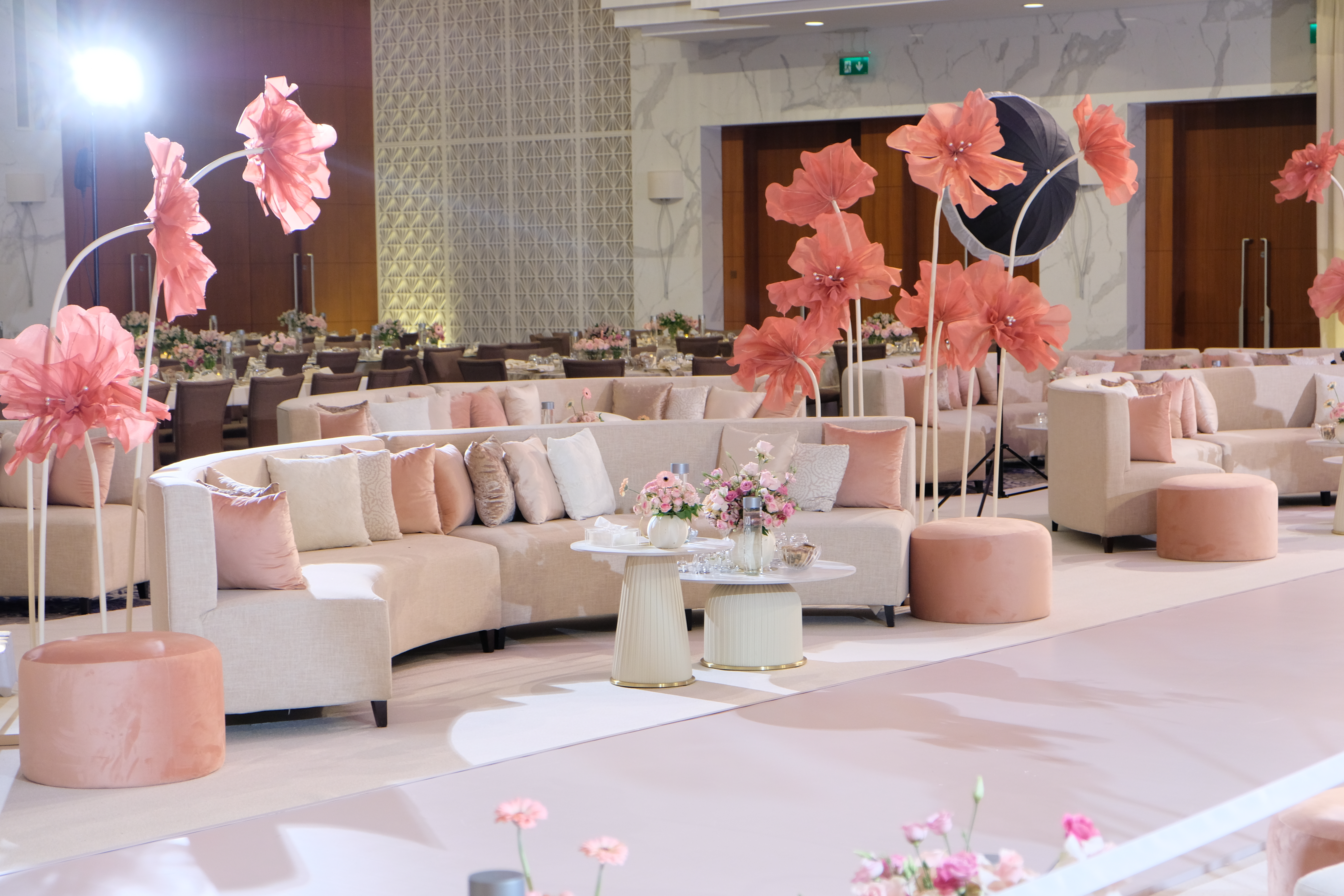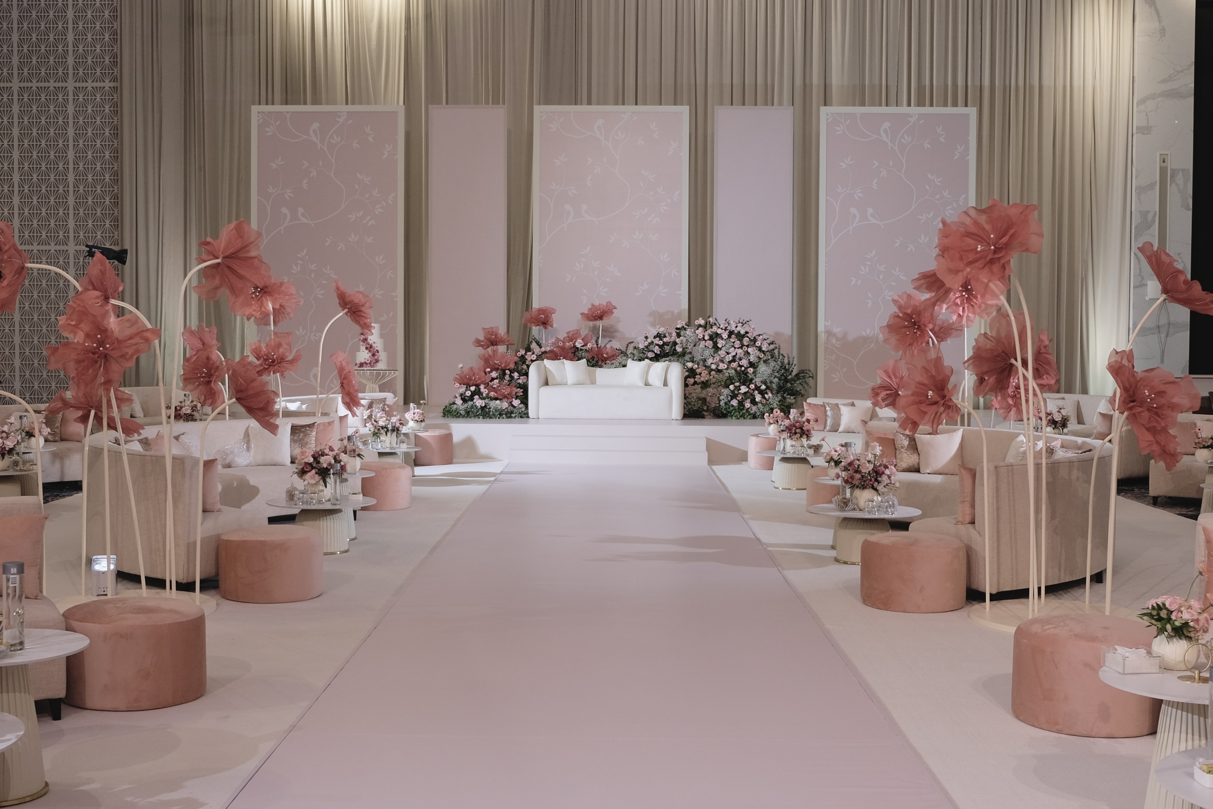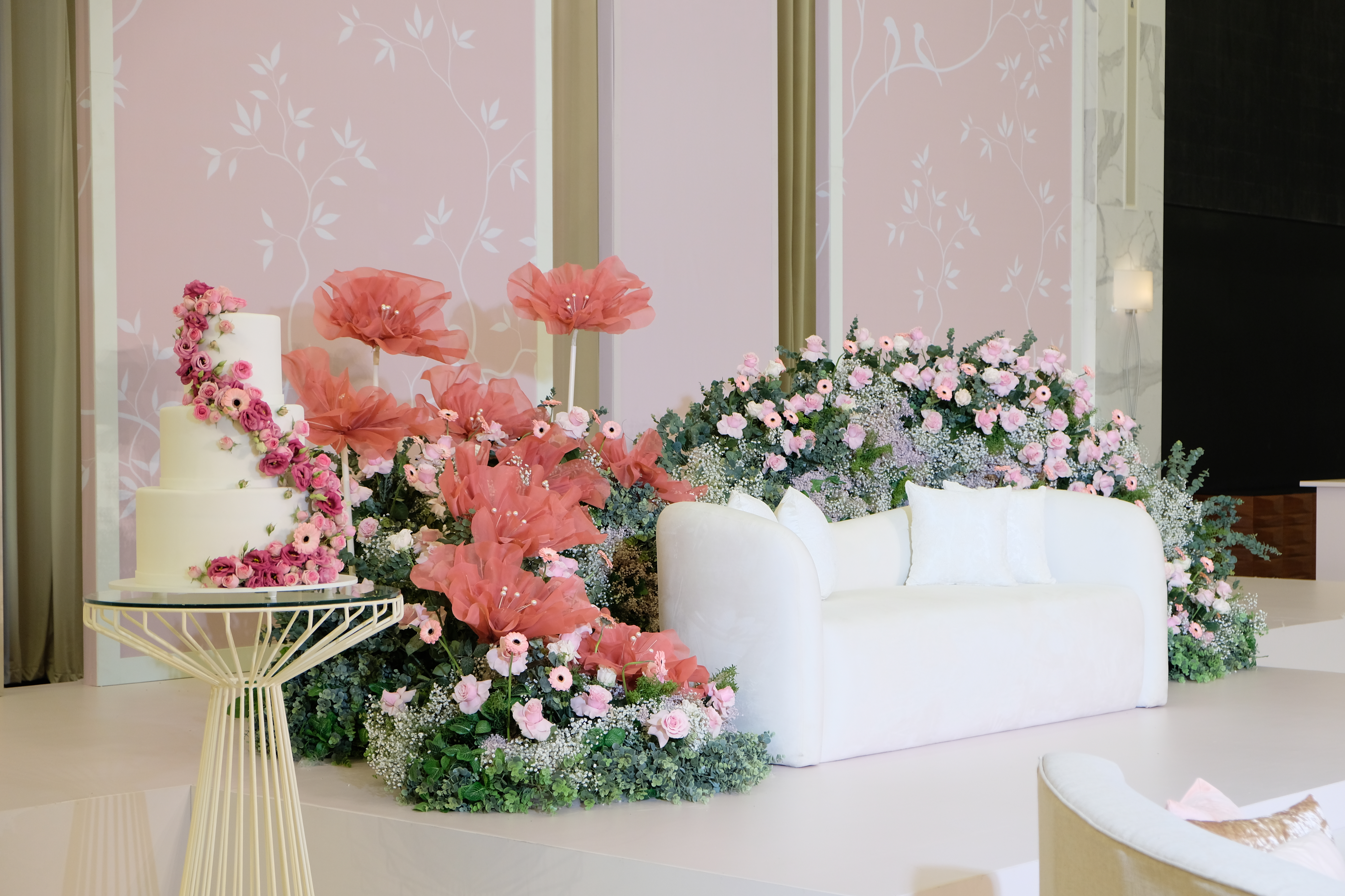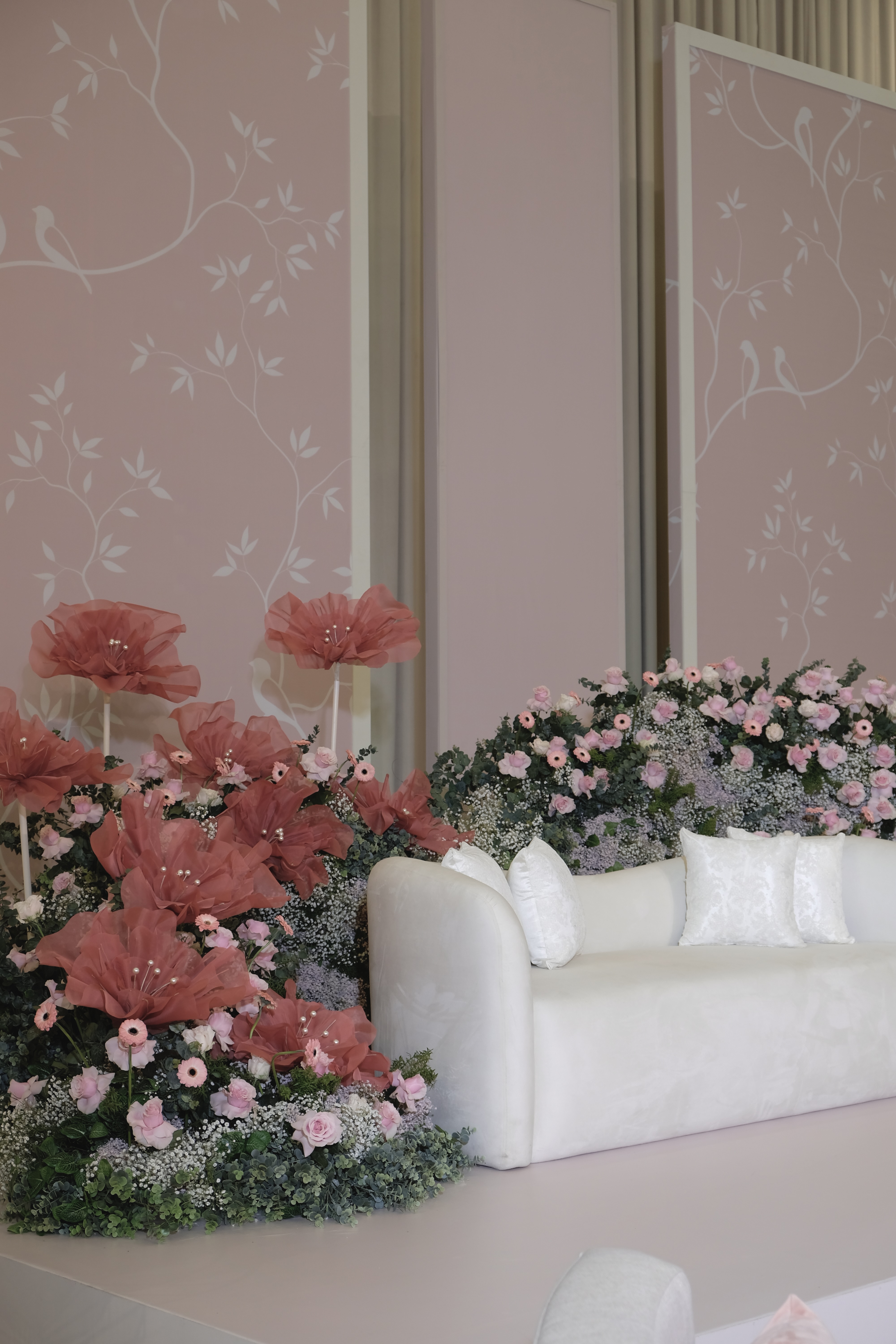 This design speaks in soft coral hues and fluid motion, where every curve and bloom carries an unspoken emotion. A space where lightness meets depth, creating an atmosphere that feels both tender and powerful.