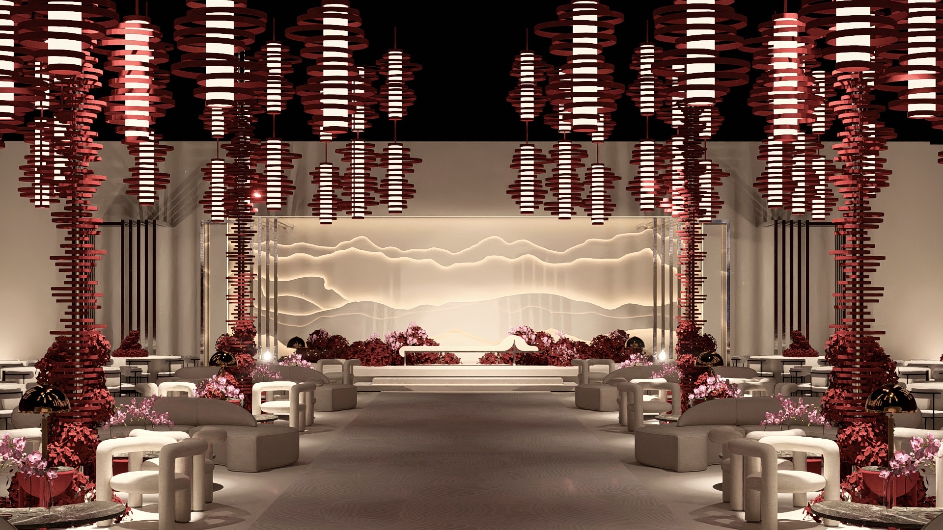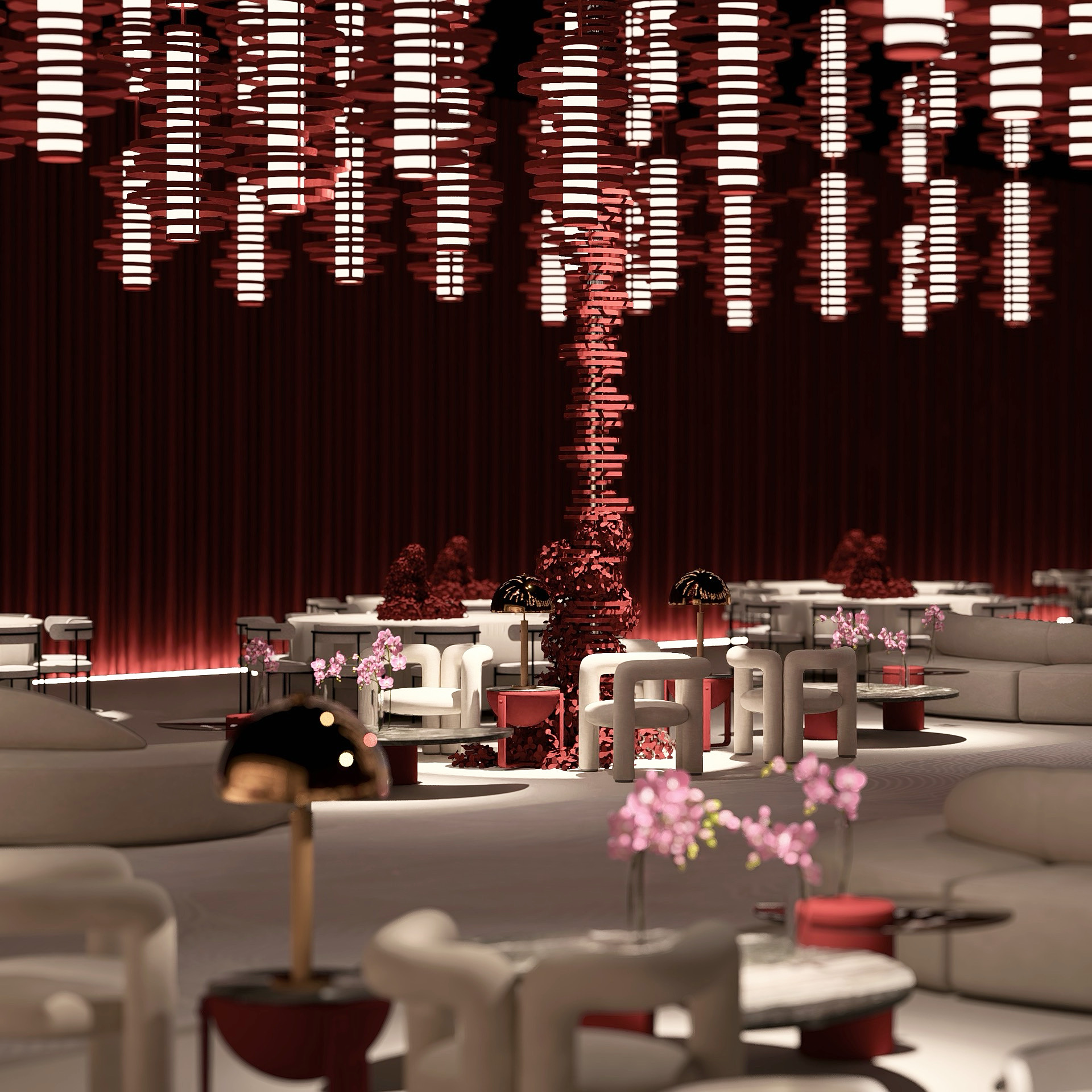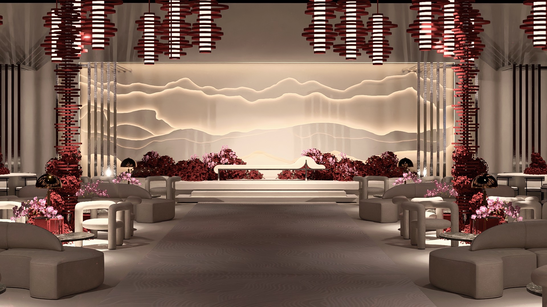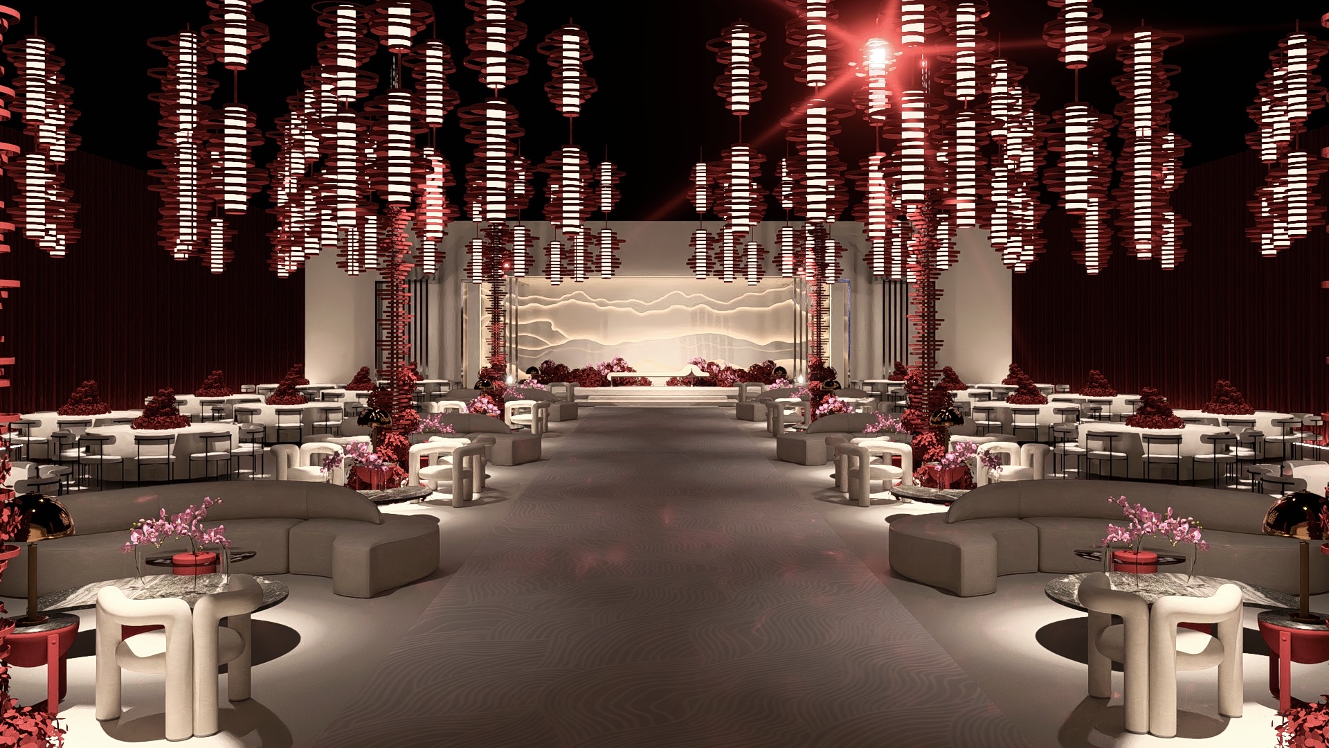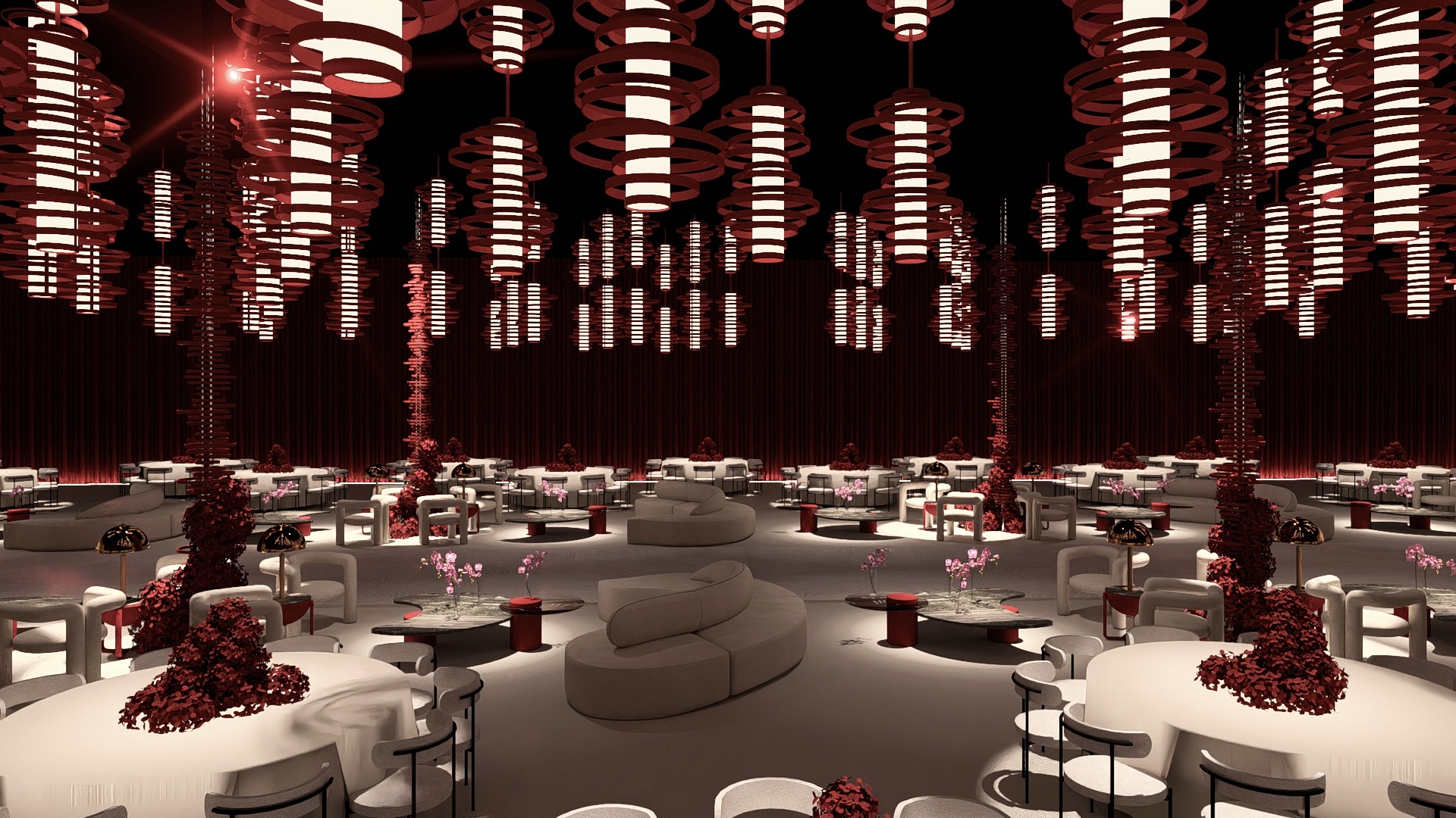 A Valentine’s-inspired luxury wedding reception, where deep reds, sculptural forms, and modern intimacy redefine romance. Rich velvet hues contrast with sleek stone surfaces, while moody lighting and statement decor create an atmosphere of passion and refinement. Designed to ignite attraction and evoke emotion, this concept transforms tradition into a bold, immersive celebration of love.