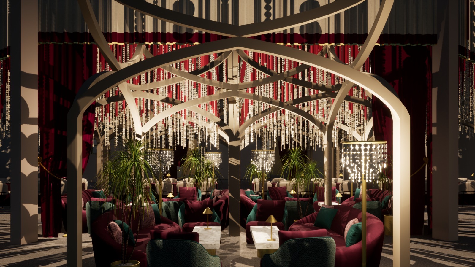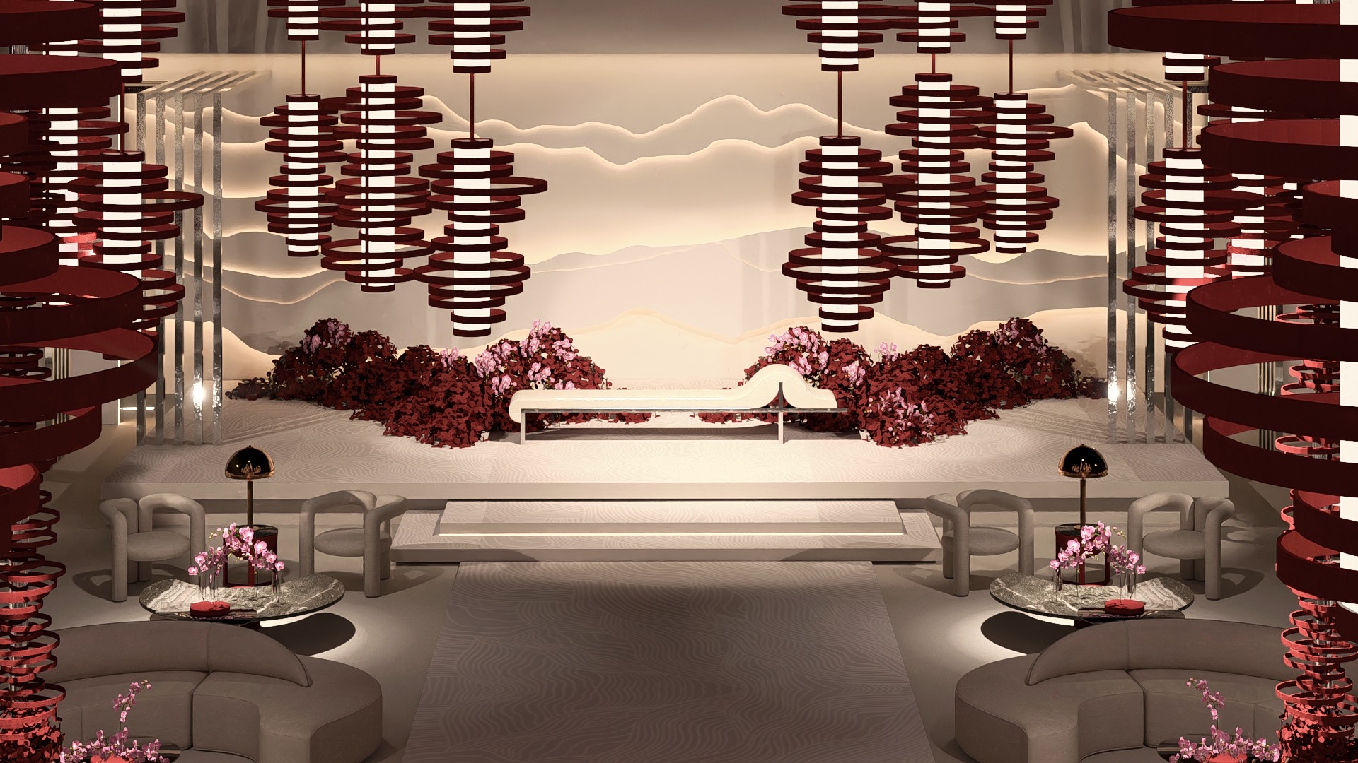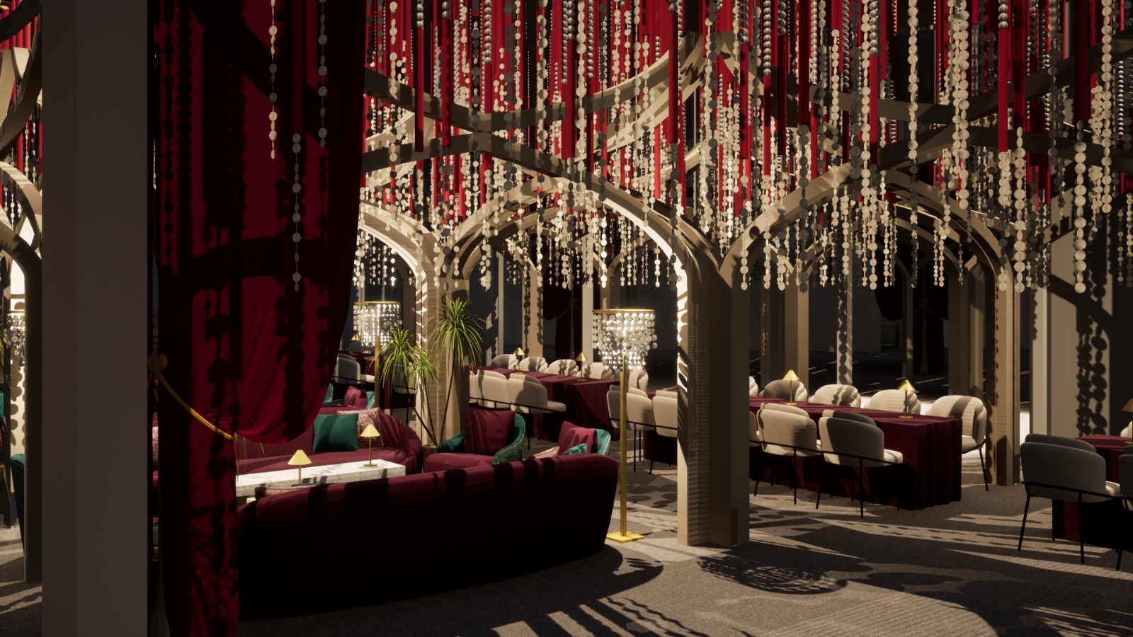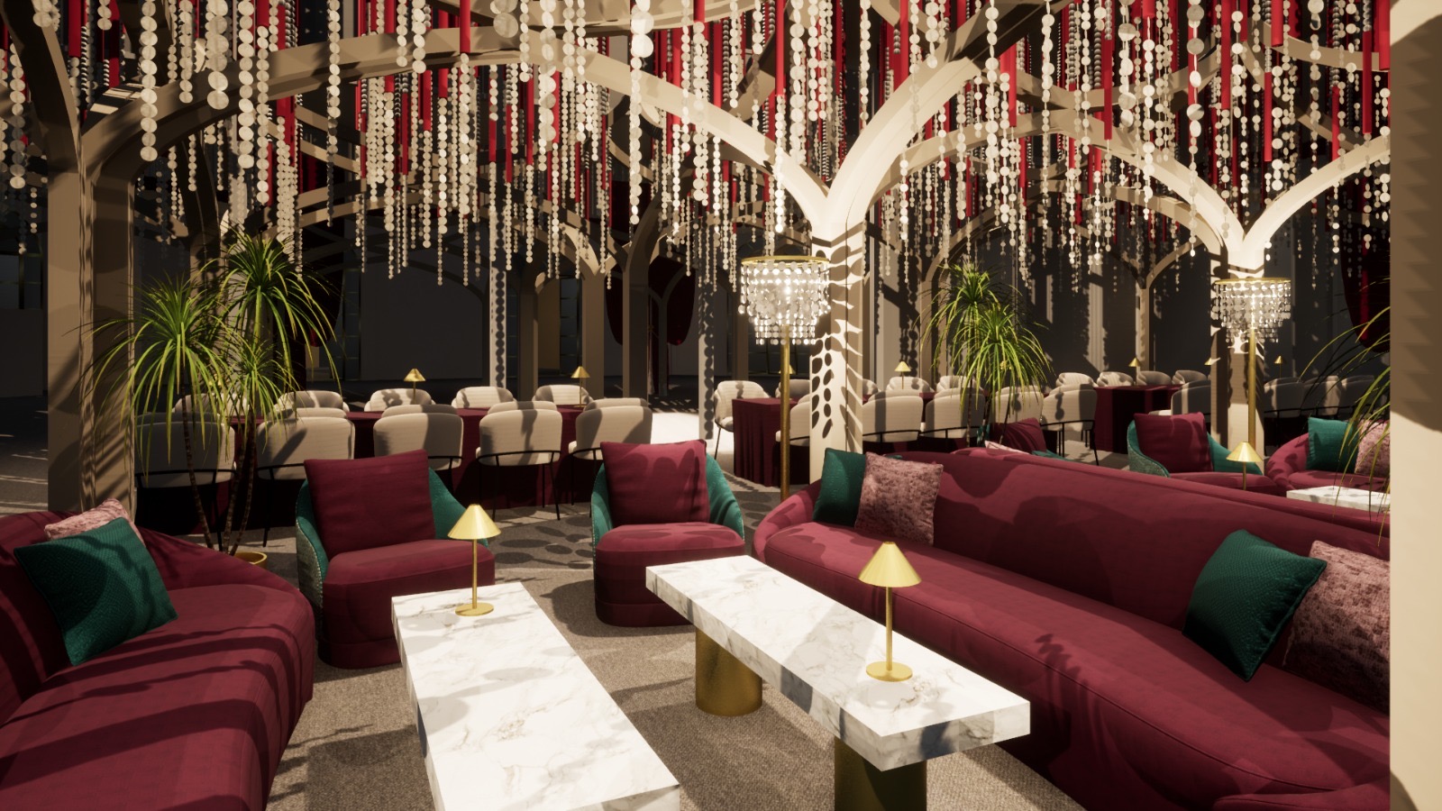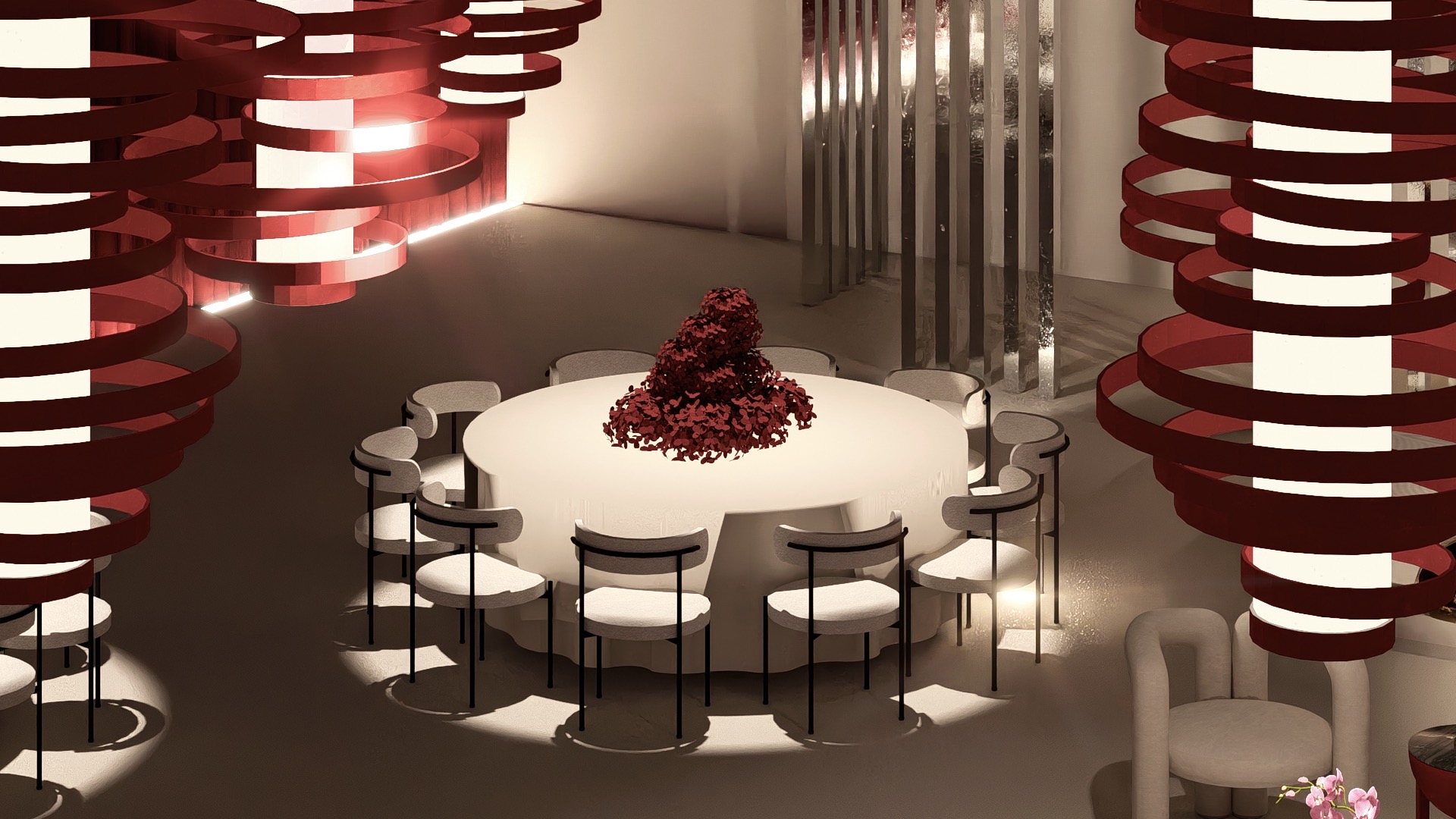 A Valentine’s-inspired luxury wedding reception, where deep reds, sculptural forms, and modern intimacy redefine romance. Rich velvet hues contrast with sleek stone surfaces, while moody lighting and statement decor create an atmosphere of passion and refinement. Designed to ignite attraction and evoke emotion, this concept transforms tradition into a bold, immersive celebration of love.