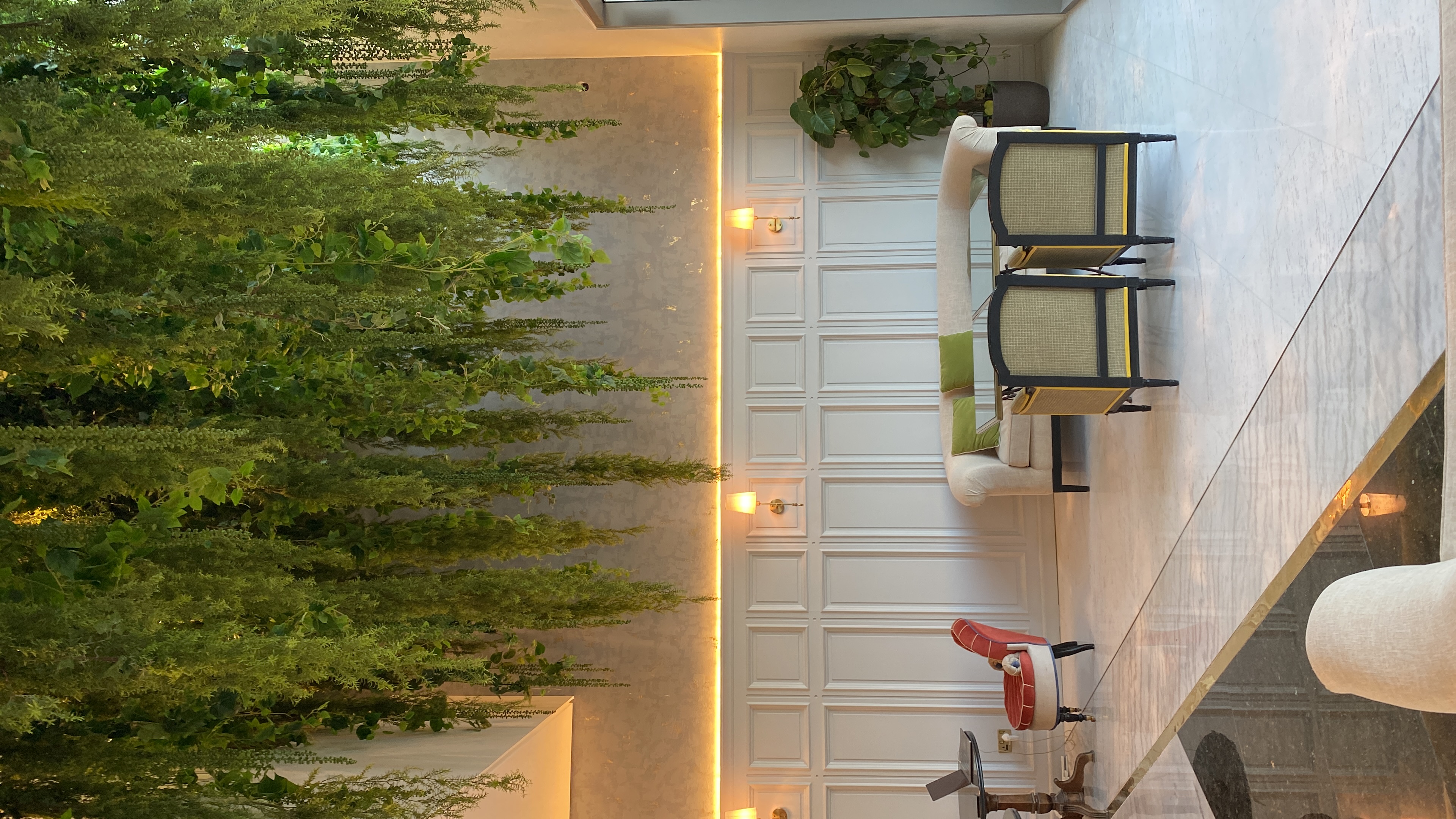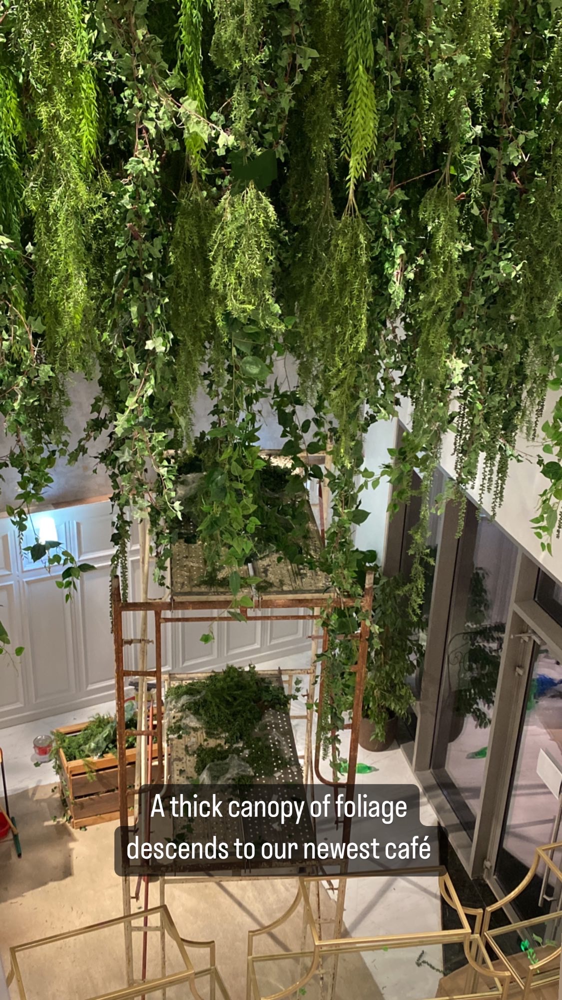 I drew inspiration from British Colonial interiors, a style that balances raw, rustic textures with refined, classic elements. The café was meant to feel organic yet sophisticated, intimate yet expansive. To bring life into the space, I suspended lush greenery across the ceiling, weaving an ambiance of warmth and nature. The walls were reimagined with French paneling, creating an inviting, home-like coziness.